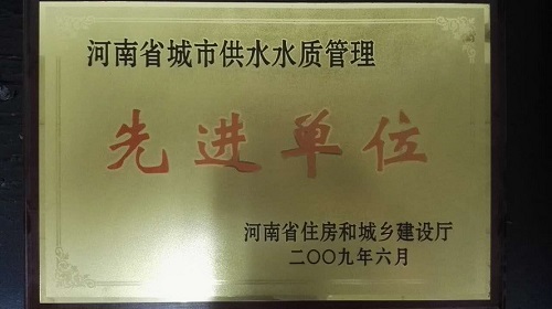 荣誉称号:河南省城市供水水质管理先进单位