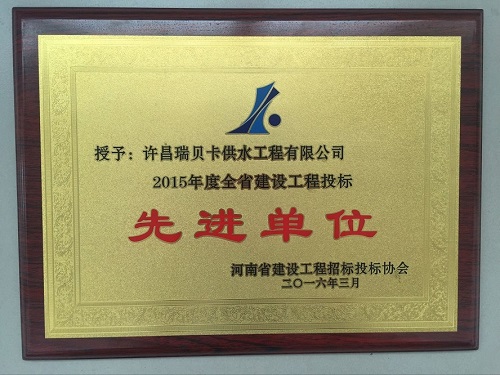 荣誉称号:2015年度全省建设工程投标先进单位